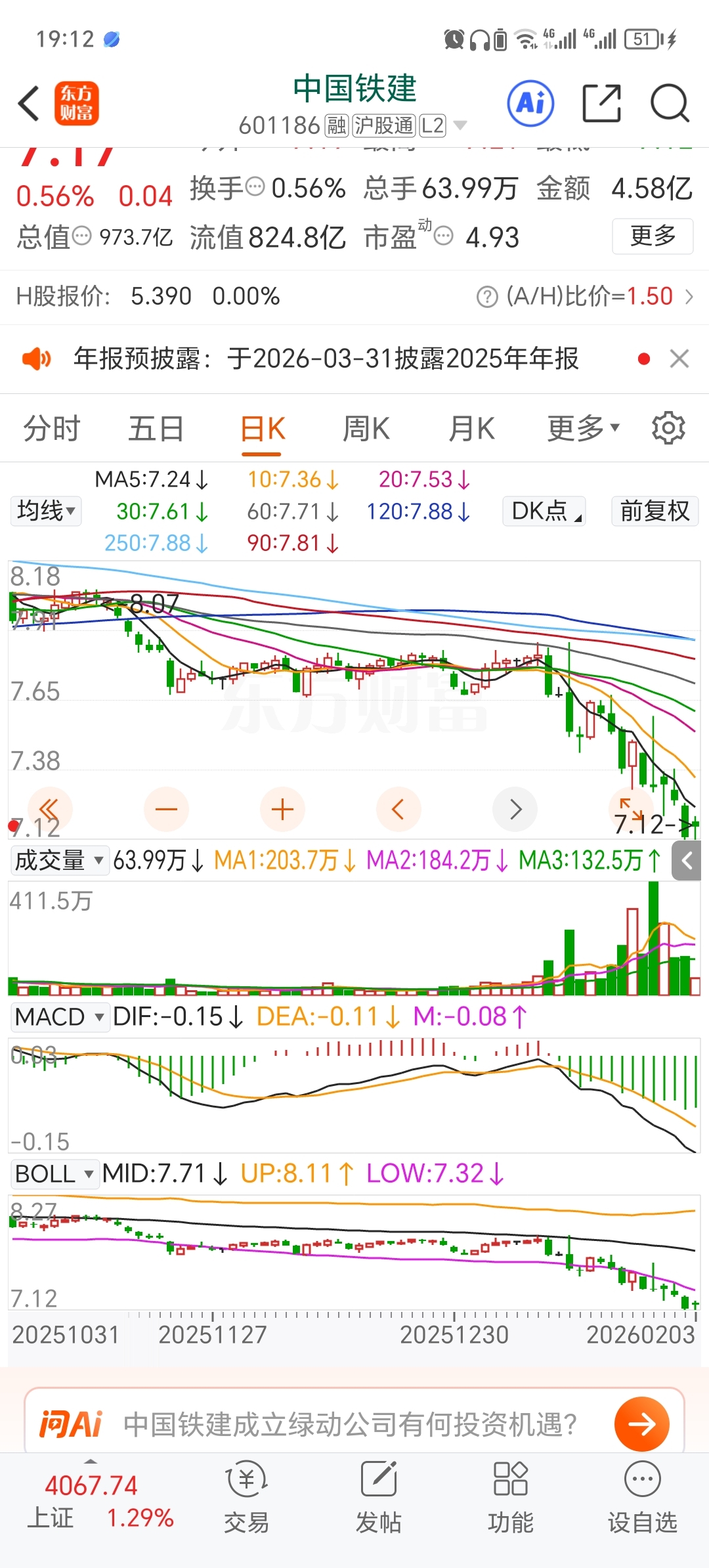 $中国铁建(SH601186)$ 按在布林轨道下轨摩擦!