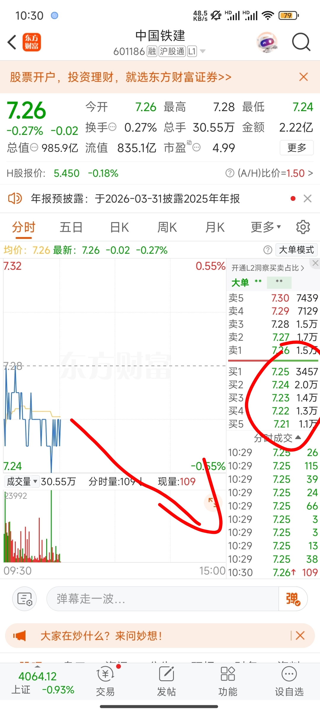 又开阴始阴跌模式啦,拖单一分一分的破掉,现在卖,后面慢慢买入就是了,很快又会到7.2以下了。