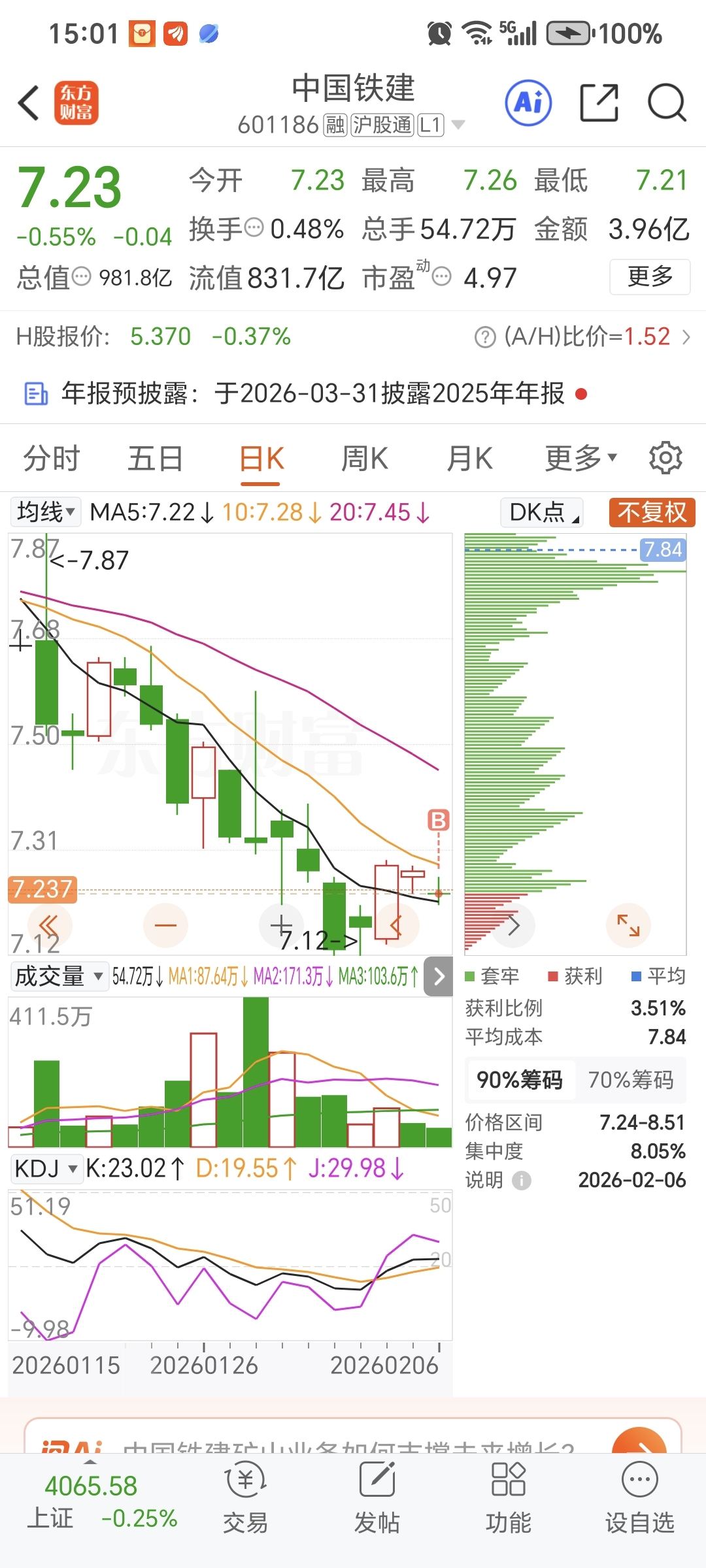 $中国铁建(SH601186)$ 建仓,资金量不大,希望别让我亏的太惨。割肉是不可能的。若朝着六元五元去,我也只能躺平。负债太高,利润一直被吃。只敢小资金参与。