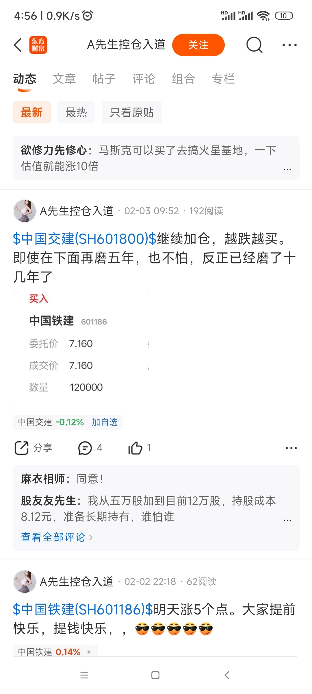 看了他的评论,真的很可怜他,坚持铁建几十年,哈哈哈