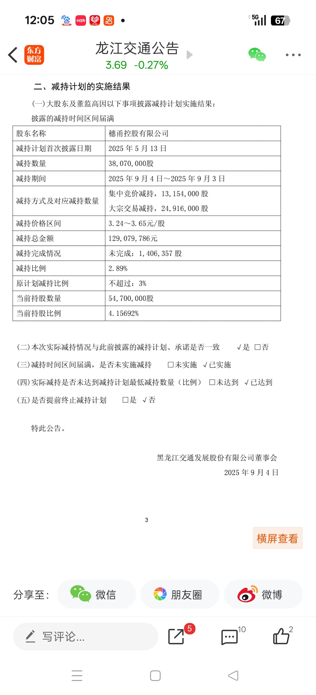 $龙江交通(SH601188)$ 三股东 从9%减持到5%左右。四股东从5.73%减持到5%左右。这两个哼哈双将手中还有10%筹码。