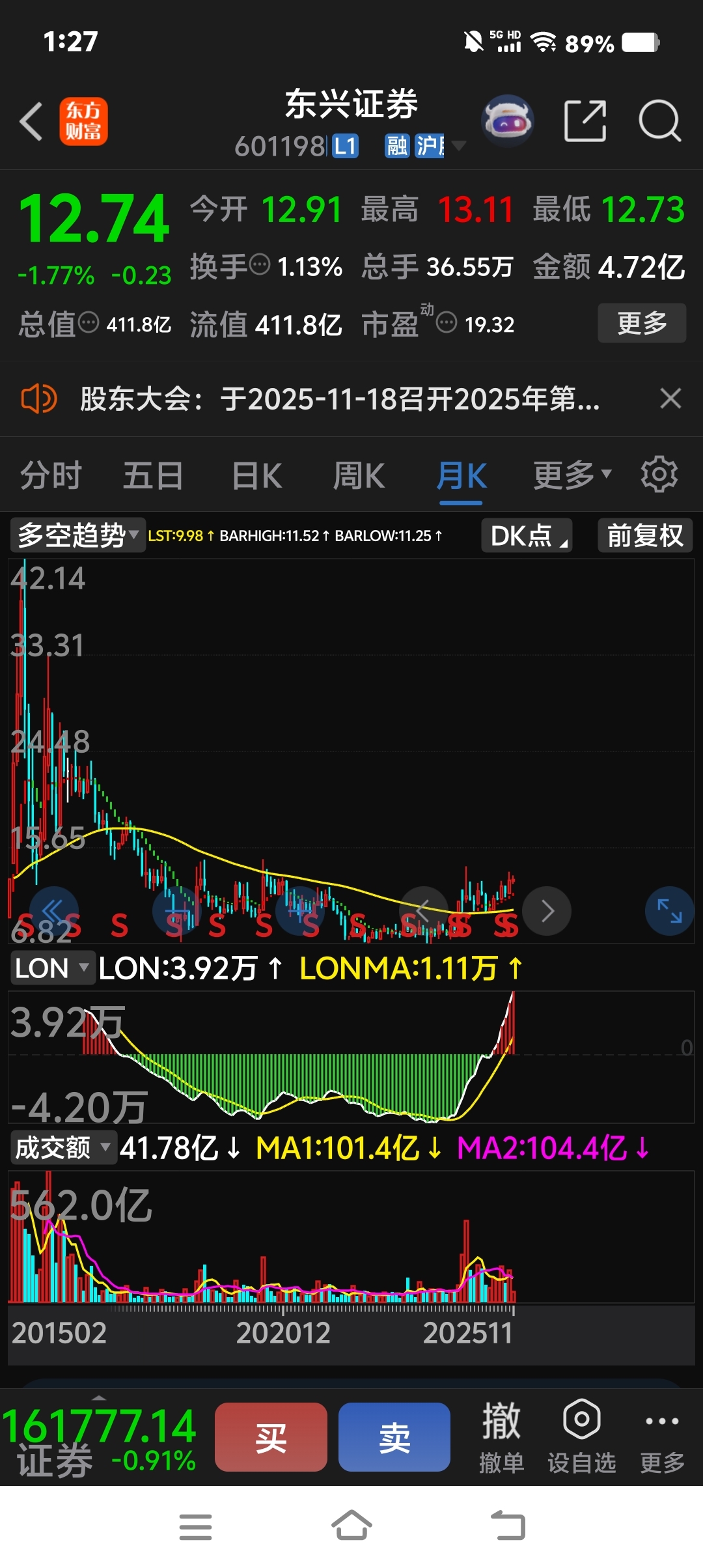 $东兴证券(SH601198)$ 12.75机会来了,五分之二仓位!