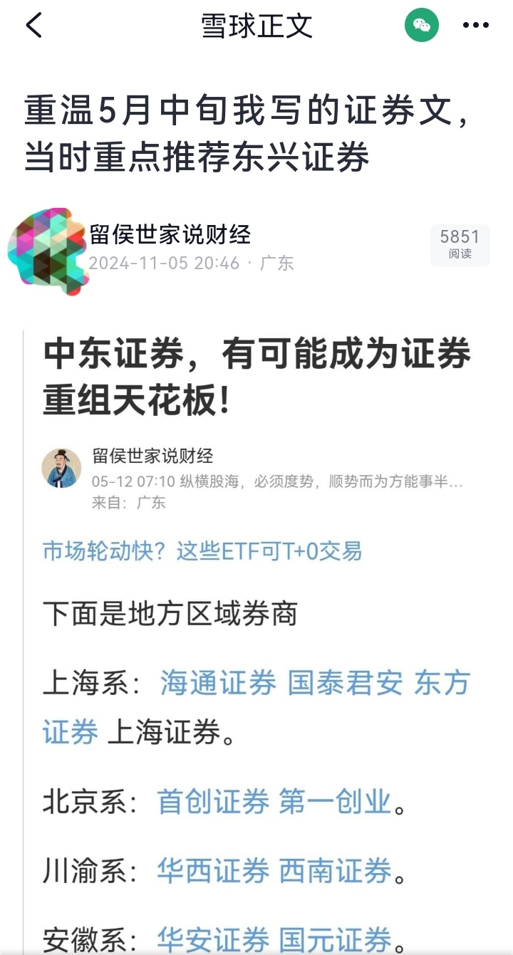 我的超凡脱俗预言!中东证券,我是第一个提出来的