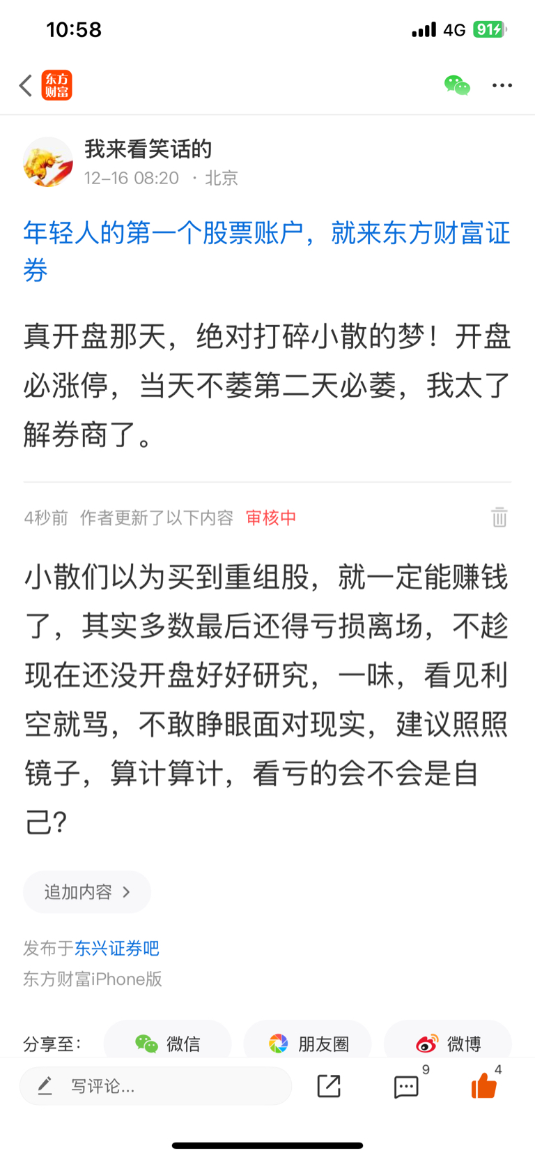 温馨提示: 1.根据《证券法》规定,禁止编造、传播虚假信息或者误导性信息,扰乱证券市场;2.用户在本社区发表的所有资料、言论等仅代表个人观点,与本网站立场无关,不对您构成任何投资建议。用户应基于自己的独立判断,自行决定证券投资并承担相应风险。《东方财富社区管理规定》