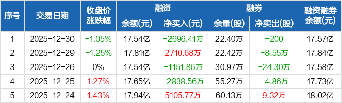 东兴证券:融资净偿还2696.41万元,融资余额17.54亿元(12-30)
