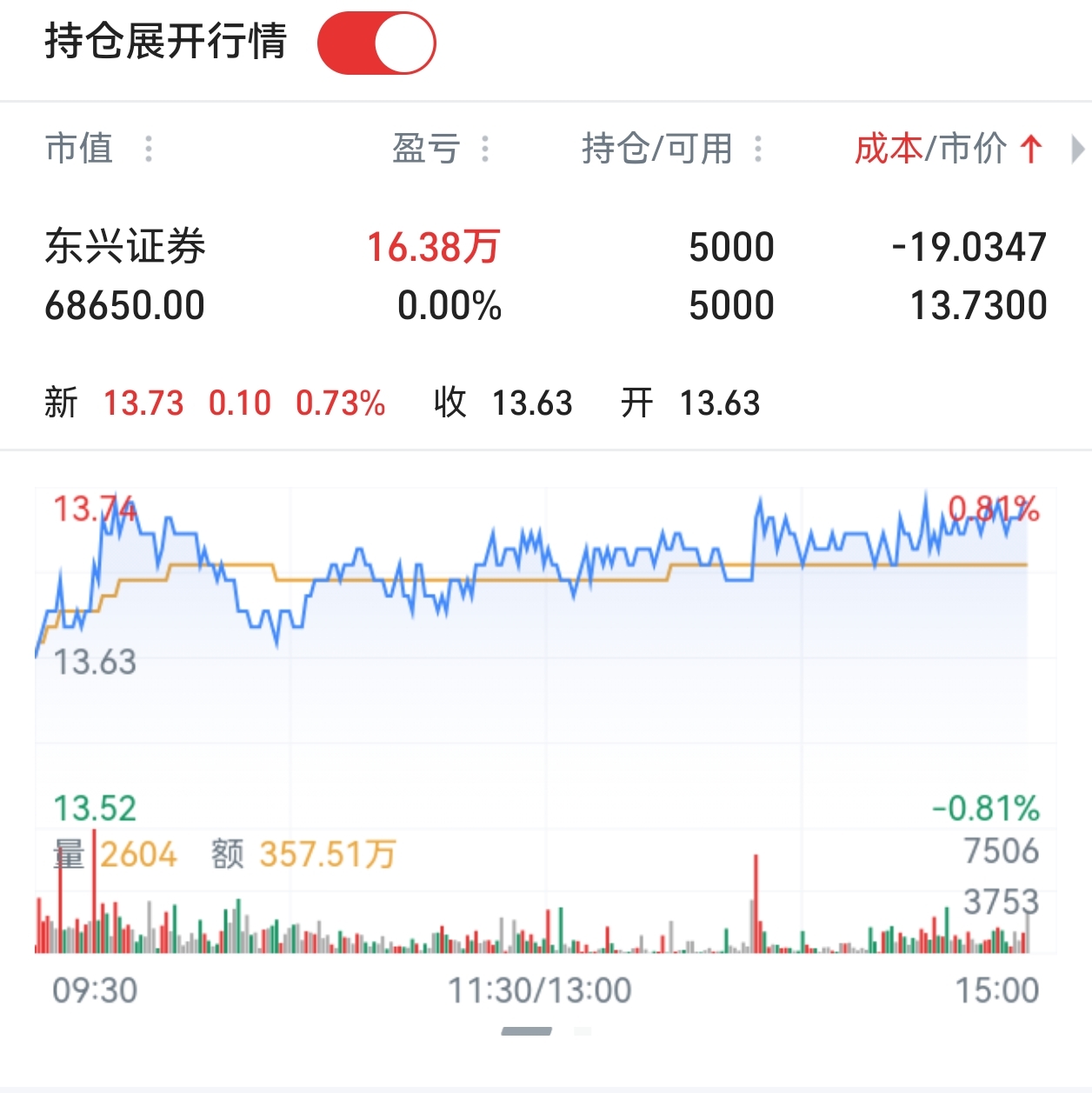 $东兴证券(SH601198)$ 留个底仓,成本搞到了负19。