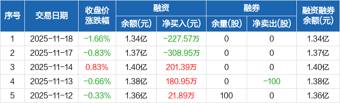 江南水务:融资净偿还227.57万元,融资余额1.34亿元(11-18)