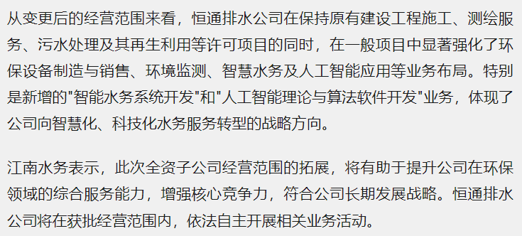 新增了环境保护专用设备制造、水质污染物监测及检测仪器仪表制造与销售