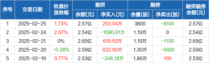 上海环境:融资净买入253.04万元,融资余额2.57亿元(02-25)