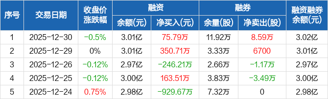 上海环境:融资净买入75.79万元,融资余额3.01亿元(12-30)