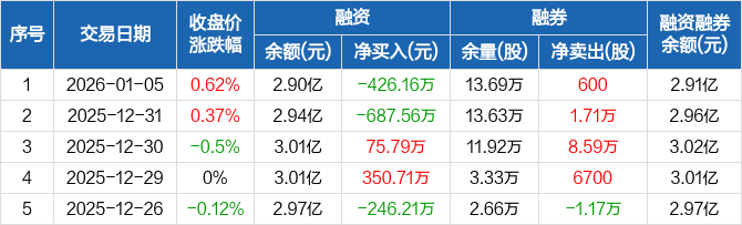 上海环境:融资净偿还426.16万元,融资余额2.9亿元(01-05)