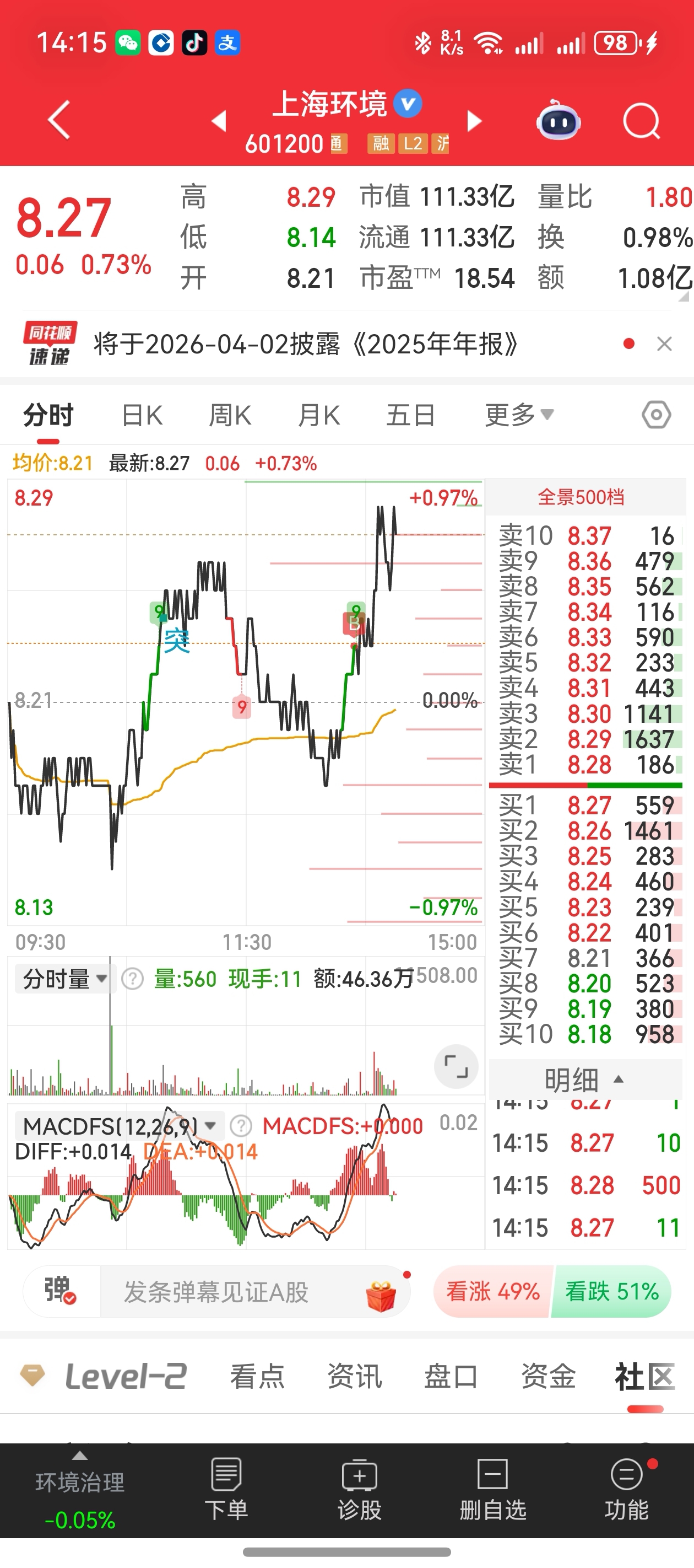 $上海环境(SH601200)$ 进几万块钱的试试水。看看咋样。