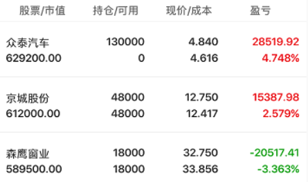目前持有森鹰窗业、京城股份、众泰汽车。