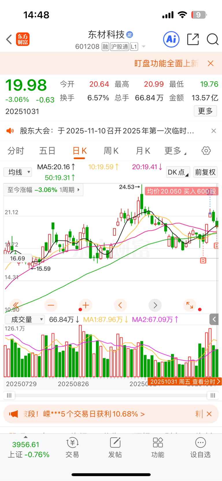 $东材科技(SH601208)$ 兄弟们我又回来了,祝我好运