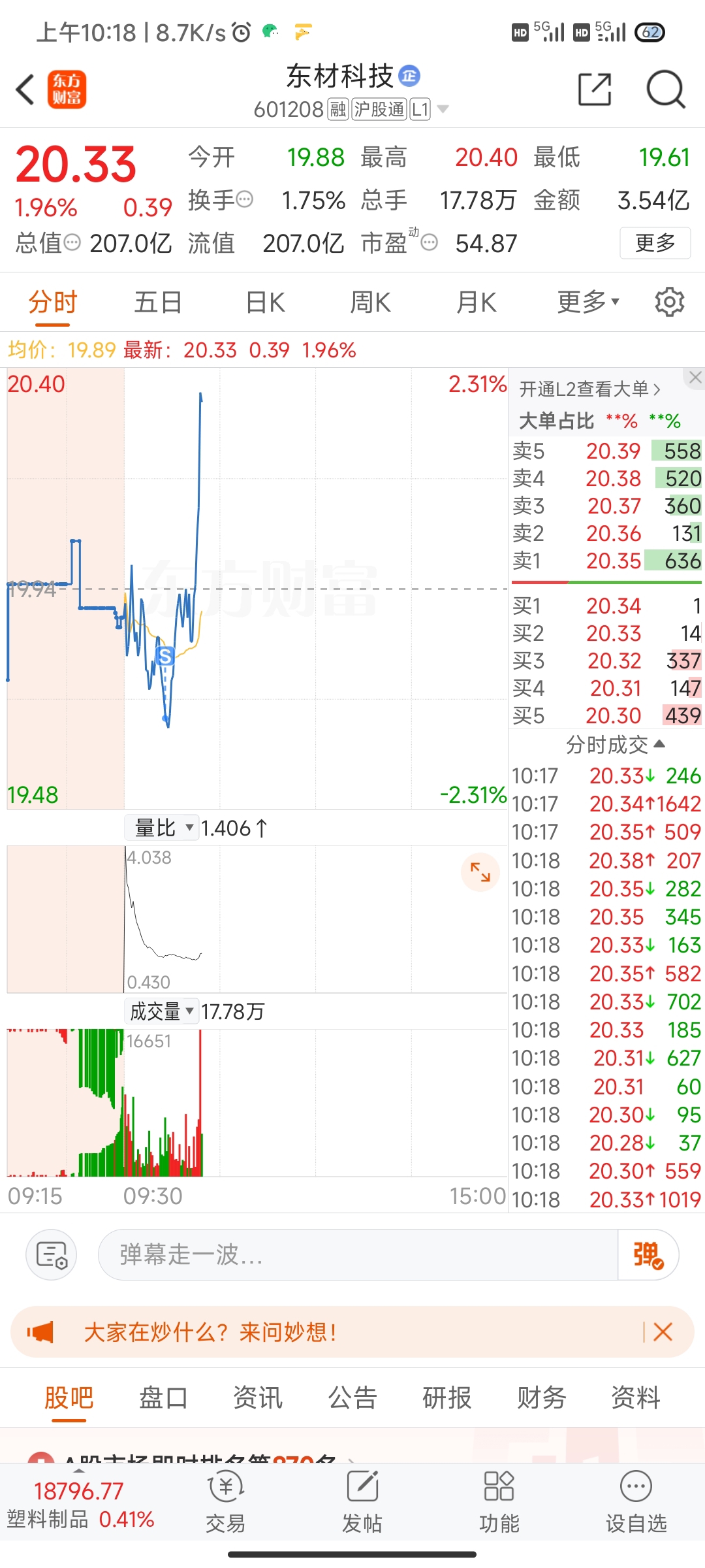 $东材科技(SH601208)$ 笑死了,两次,昨天特一今天东材,全是早上卖了,然后起飞。今天东材止损点定的19.60,下杀一瞬间看着心烦就卖了,最低点19.61,哈哈哈哈,果然还是得修理心态啊