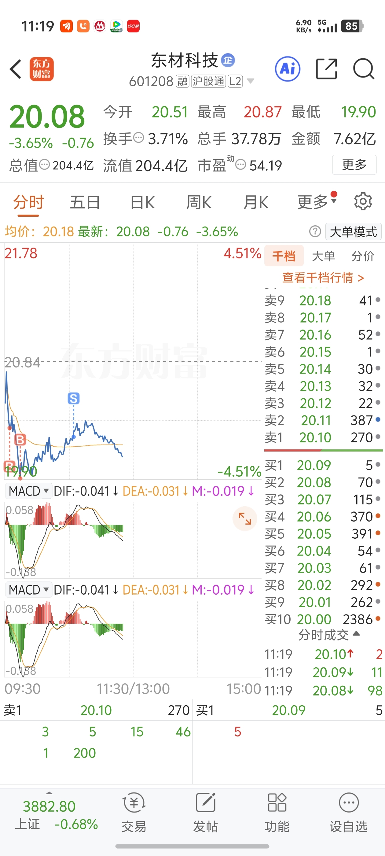 $东材科技(SH601208)$ 高抛低吸。今天做好大亏的准备了 没想到小亏。刚刚账号还盈利了。不错7-8个科技票以为血亏得