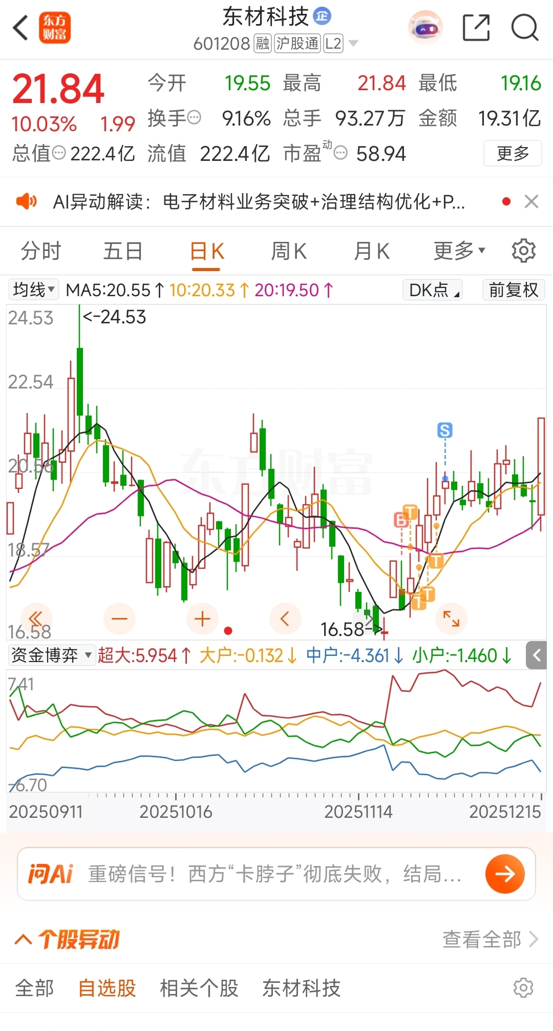 $东材科技(SH601208)$ 我还没上车,还没上车,今天犹豫了想着明天绿了买的,卧槽刚刚一看吓我一跳