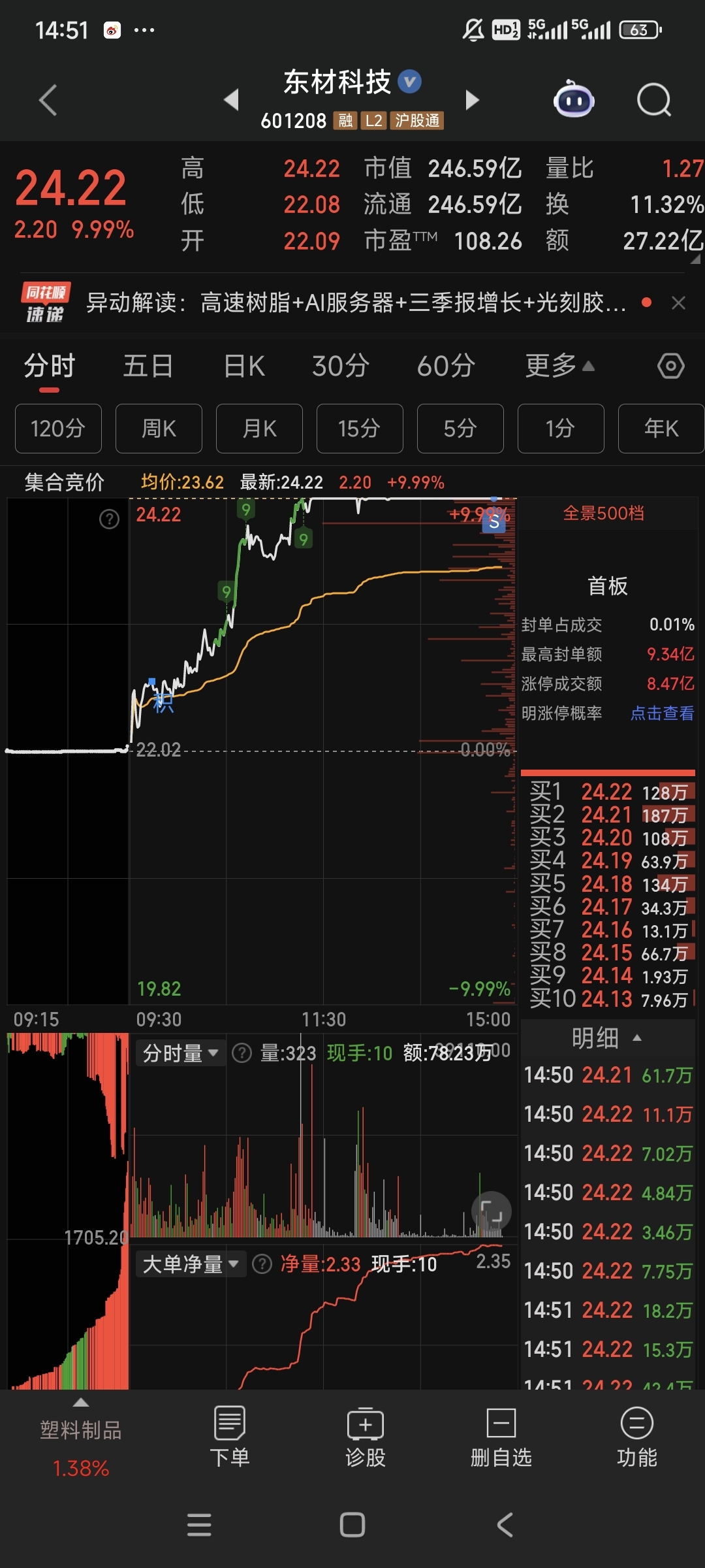 $东材科技(SH601208)$ 反复炸板,拜拜啦