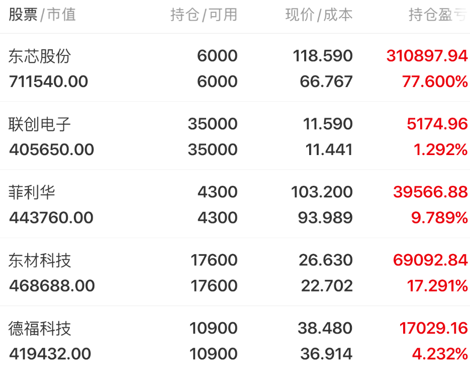 她基本面非常不错啊,公司有35.87%砺算科技的股权,砺算科技是GPU的领先企业,技术实力很强,砺算的部分产品性能超越英W达的RTX4060,未来G产替代的想象空间非常大啊。而且传公司已经有实质订单了。潮汐哥已经陪着几个月了,总的鱼获非常不错了,目前还没打算松口啊。短期她已经有企稳的迹象了,还有望延续波段反弹行情啊。