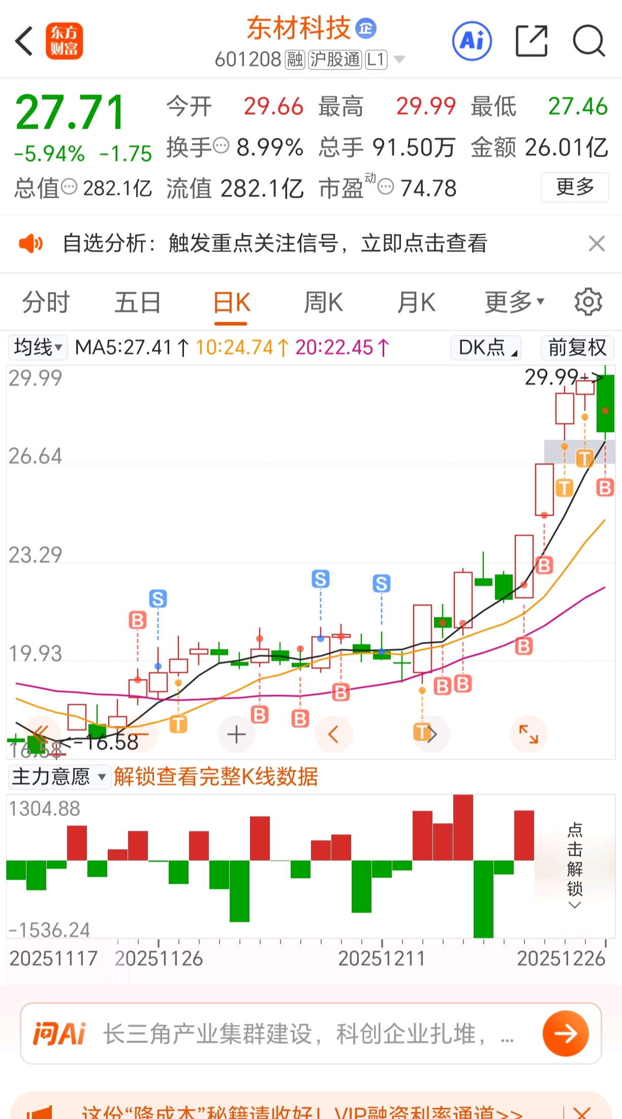 东材科技,今天回踩5日线 。也在慢慢回补之前高抛的仓位 ,继续看好m9方向,看的见的确定性明年 q2量产,q1出货。。