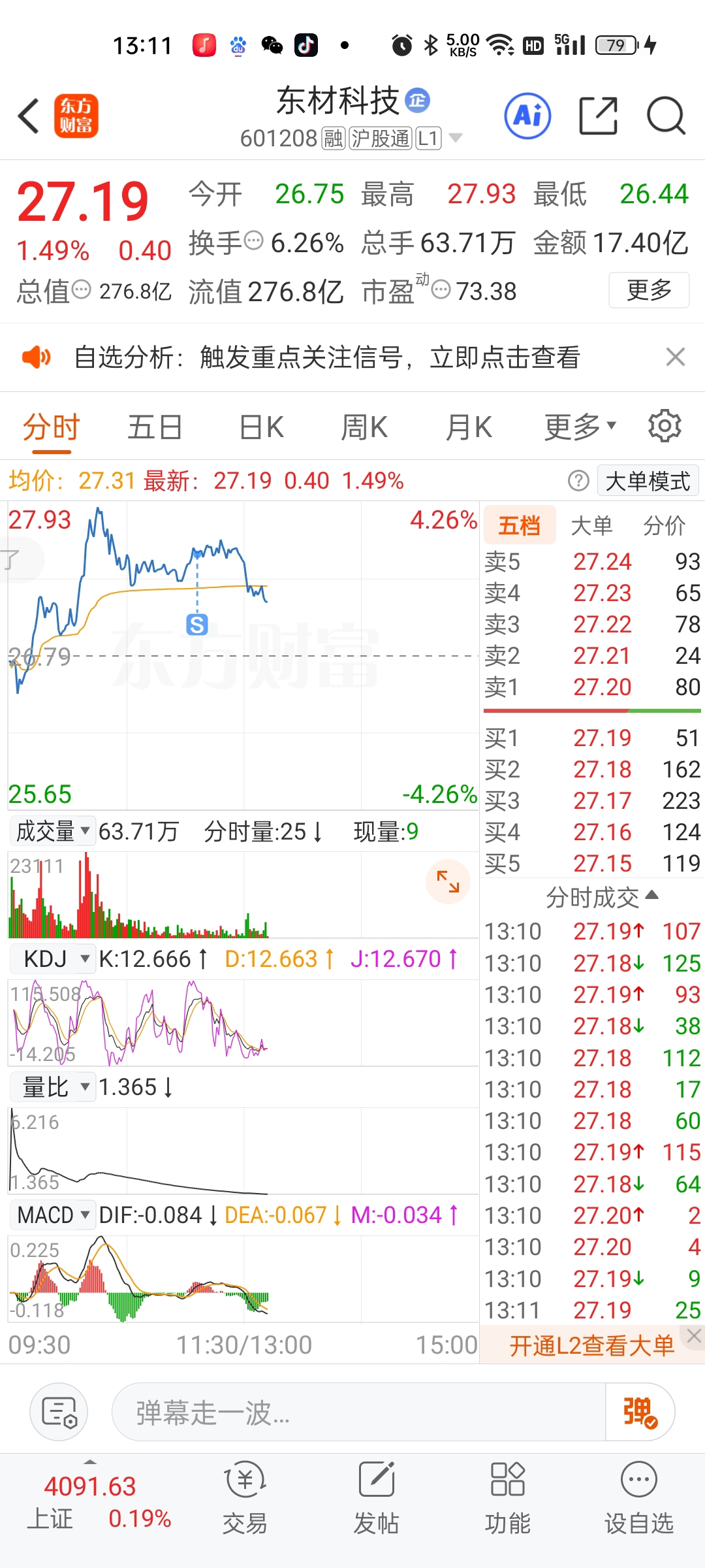 $东材科技(SH601208)$ 卖了,虽然没卖到高点,也可以了,等你24再来接你