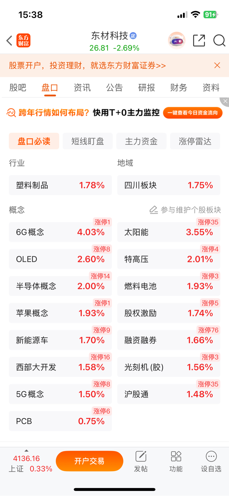 $东材科技(SH601208)$ 跌的不明所以然!有本事赶紧到15!