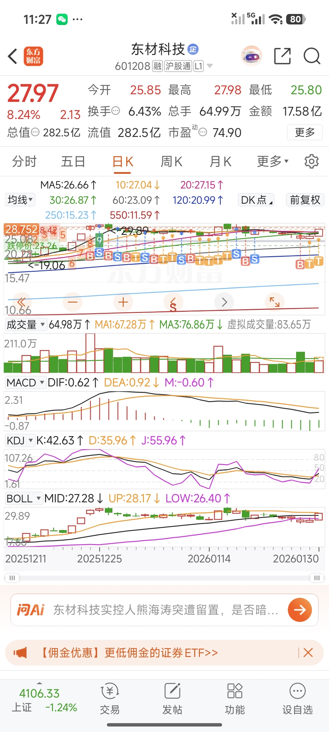 $东材科技(SH601208)$ 我挂的布帘子挂的真不错,下午挑战布林线上轨,目前已T出12多点