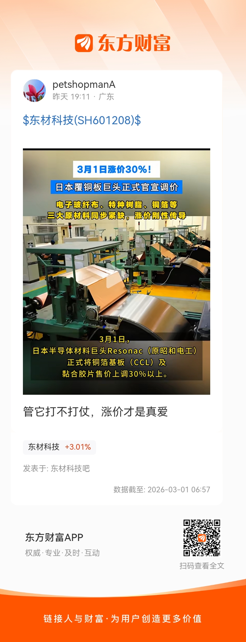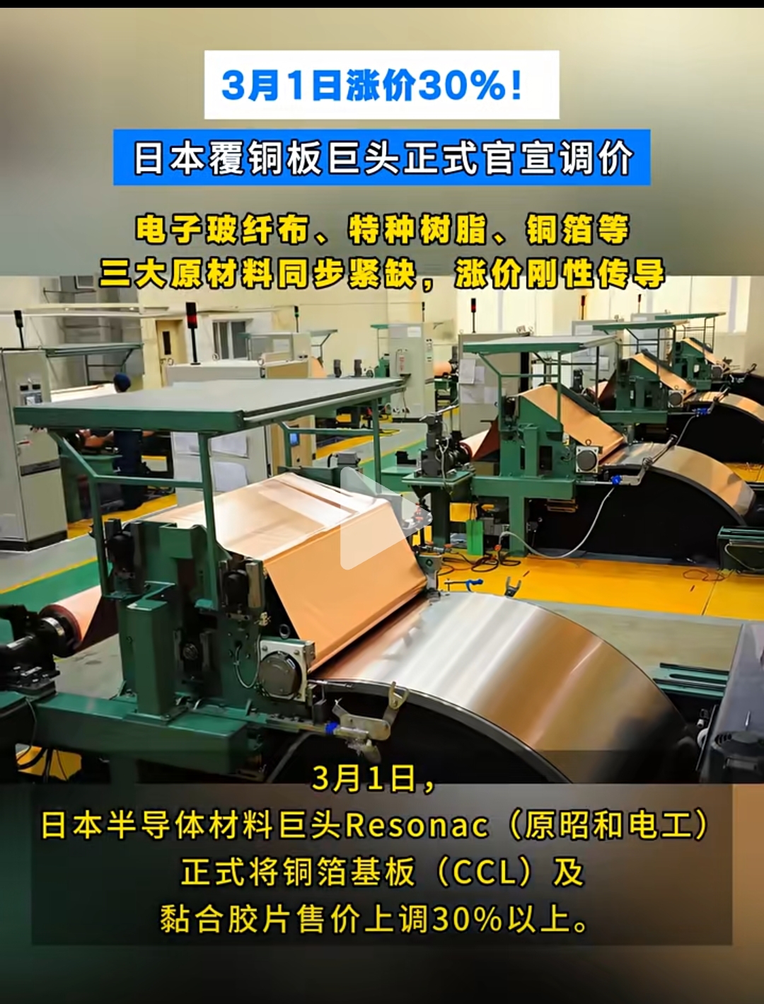 3月1日涨价30%!日本覆铜板巨头正式官宣调价电子玻纤布、特种树脂、铜箔等三大原材料同步紧缺,涨价刚性传导希望这是真的,真的就有救了