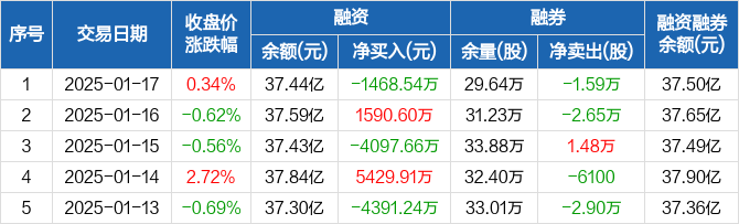 国泰君安:融资净偿还1468.54万元,融资余额37.44亿元(01-17)