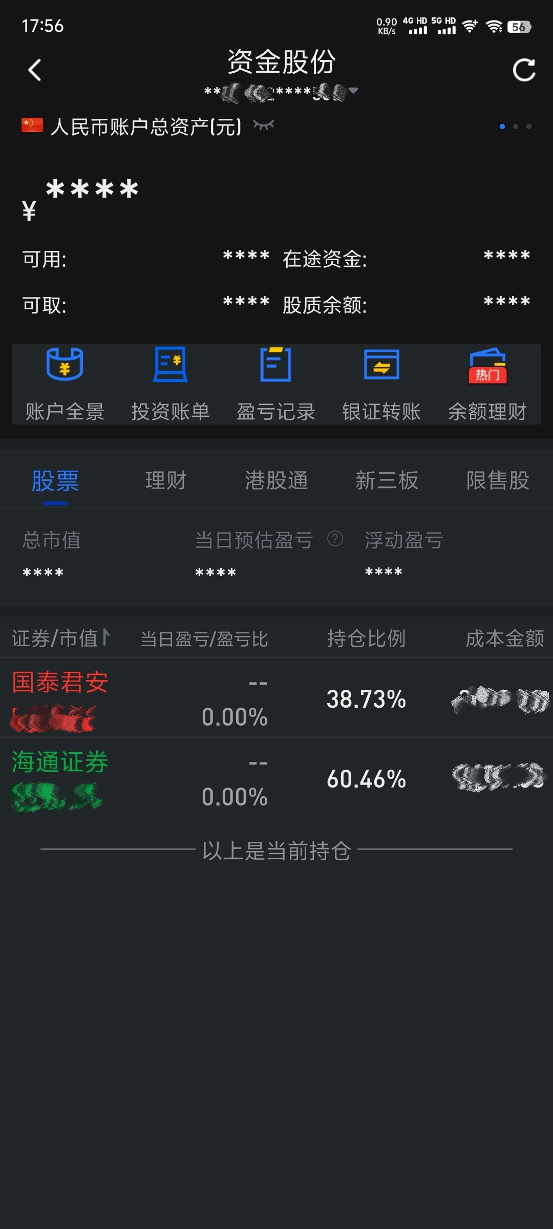 2月5日收盘全仓单吊泰君+海公公。现在1红1绿,泰君10复牌,海公公转换股时间尚