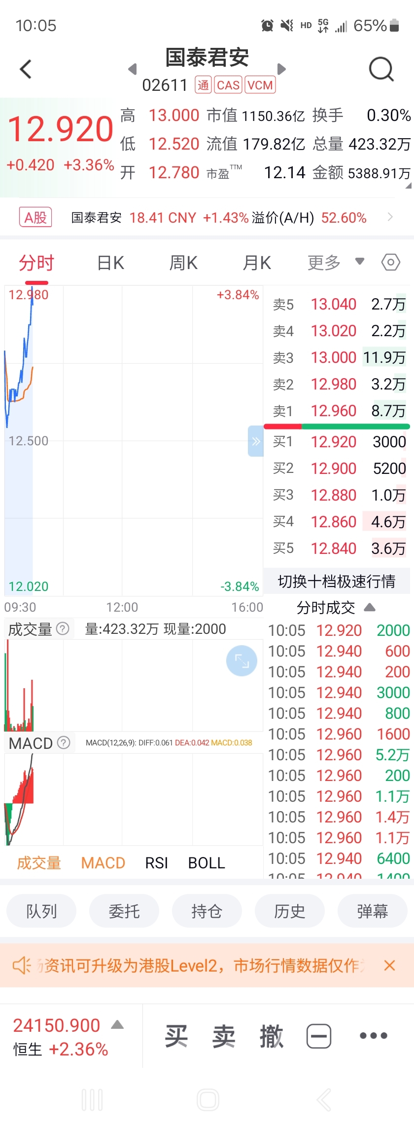 $国泰君安(SH601211)$ 快讯:国泰君安港股盘中突破13港元。