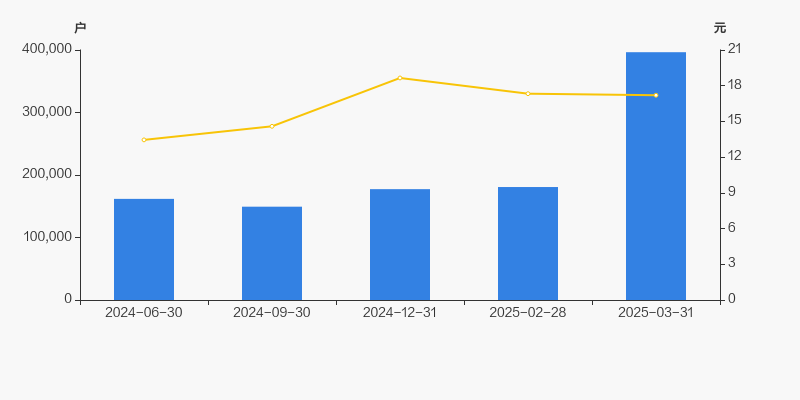 自2024年9月30日以来,公司股东户数连续3期上涨,截至目前增幅为165.55%。2024年9月30日至2025年3月31日区间股价上涨17.88%。