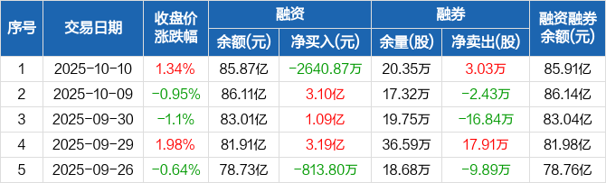 国泰海通融资融券信息显示,2025年10月10日融资净偿还2640.87万元;融资余额85.87亿元,较前一日下降0.28%。