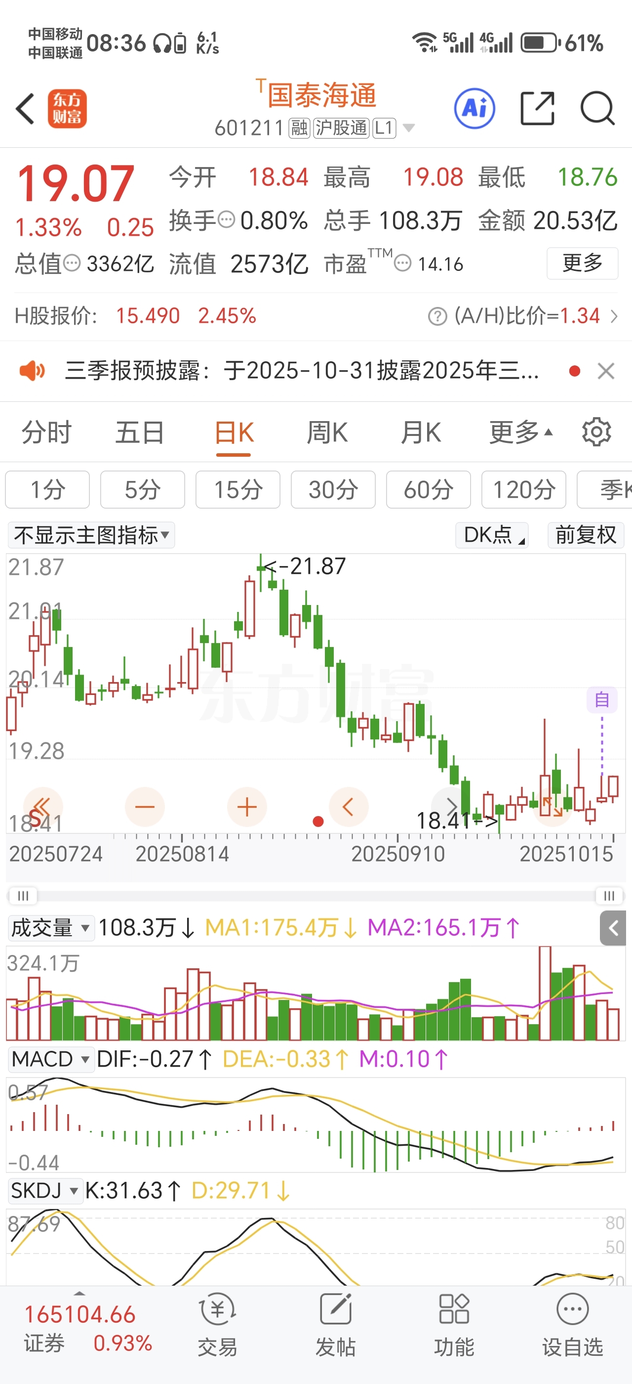 $国泰海通(SH601211)$ 关注你了。今天能起来吗?