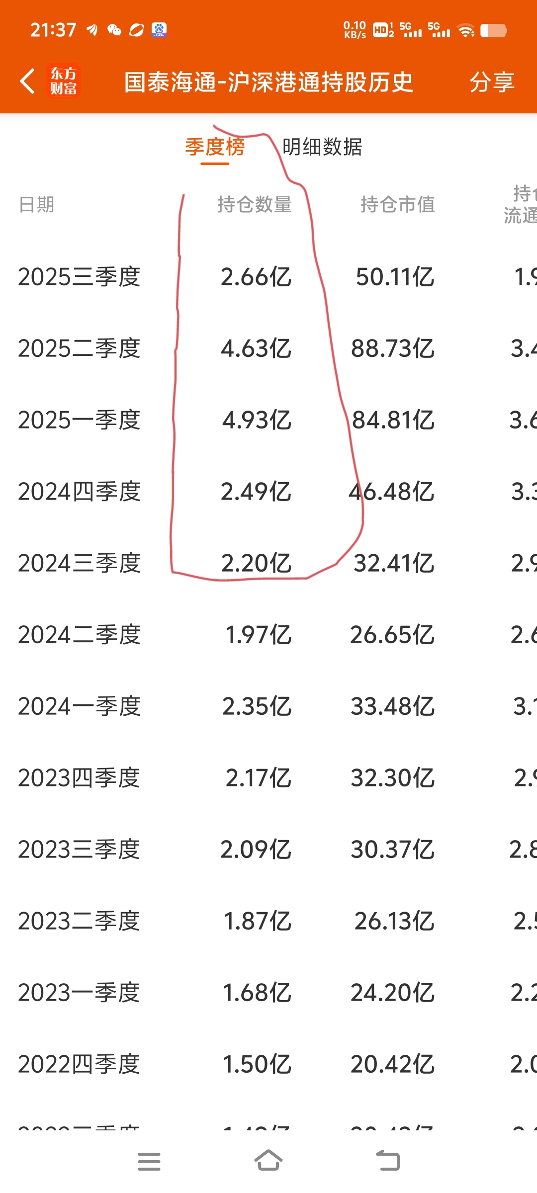 $国泰海通(SH601211)$ 北向减持已经差不多了,已经回到以前的量