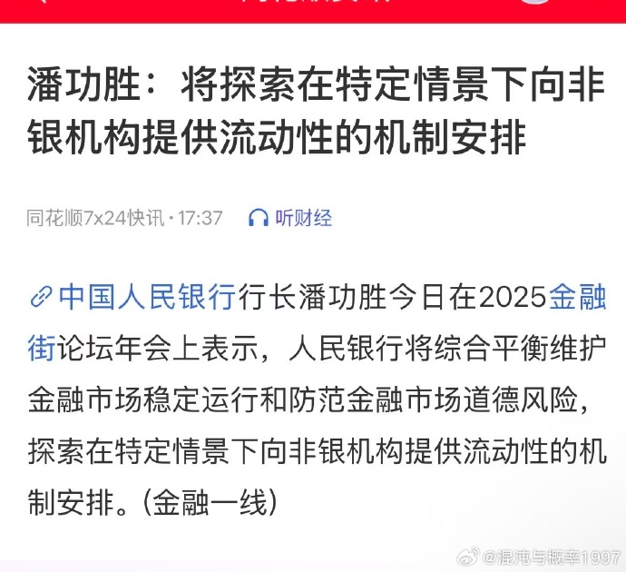 潘功胜:将探索在特定情景下向非银机构提供流动性的机制安排