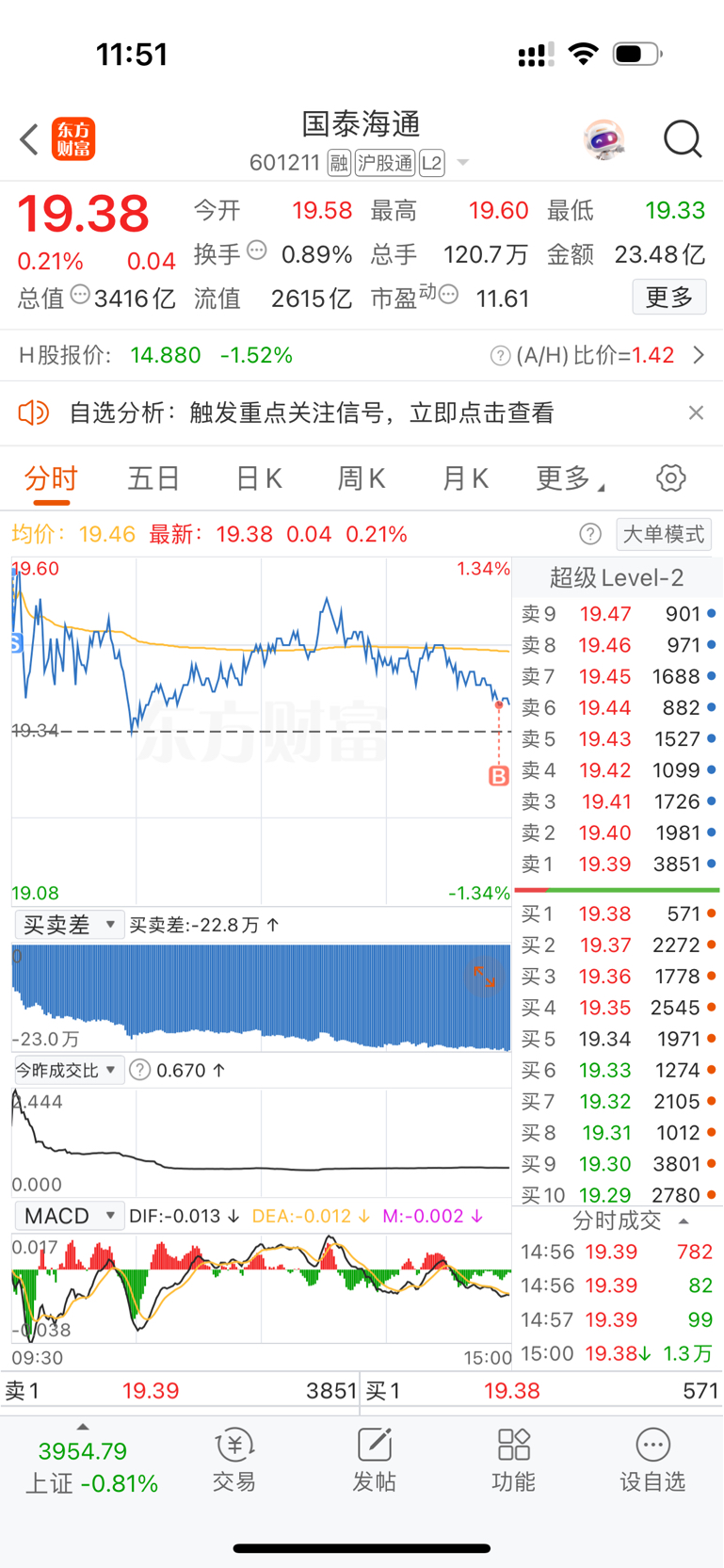 $国泰海通(SH601211)$ 昨天说了,开盘即最高!