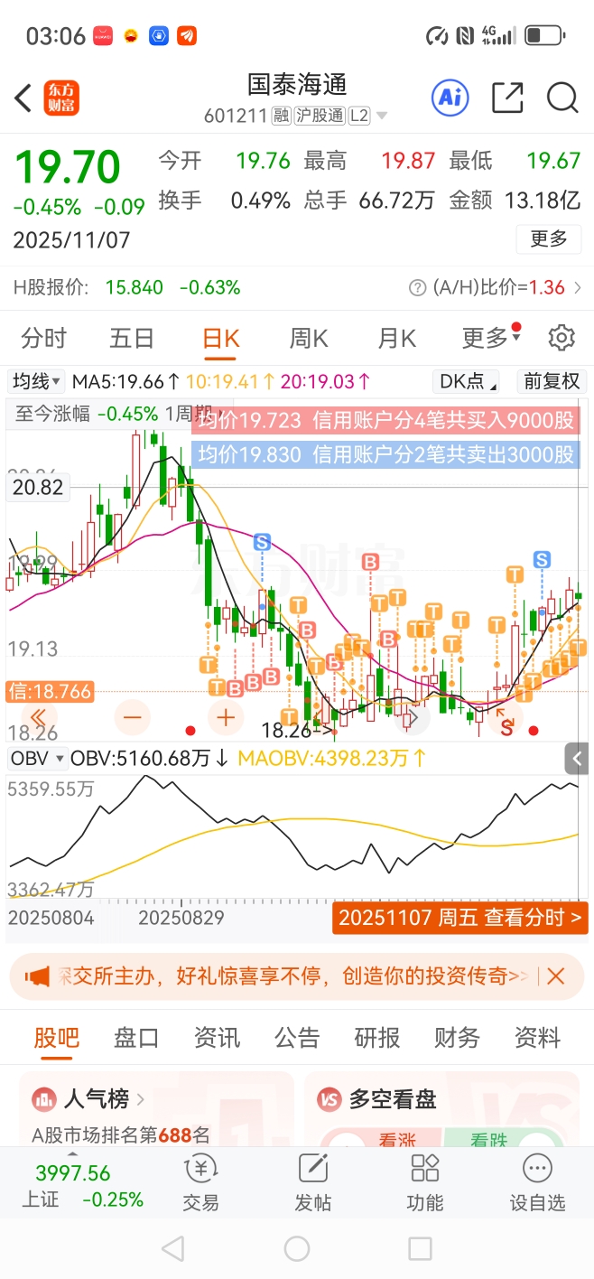 $国泰海通(SH601211)$ 高抛低吸每天都给机会,看来下周还得加大做T成交量,不然利润太少了!