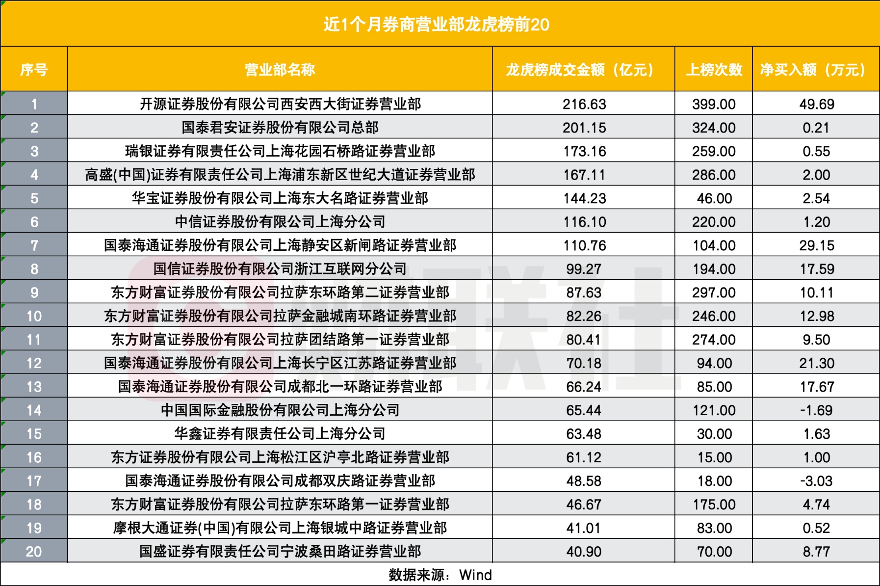 梳理近半年、近三个月及近一个月券商营业部龙虎榜前20数据,市场格局在延续头部效应的同时,正展现出四大鲜明的趋势。