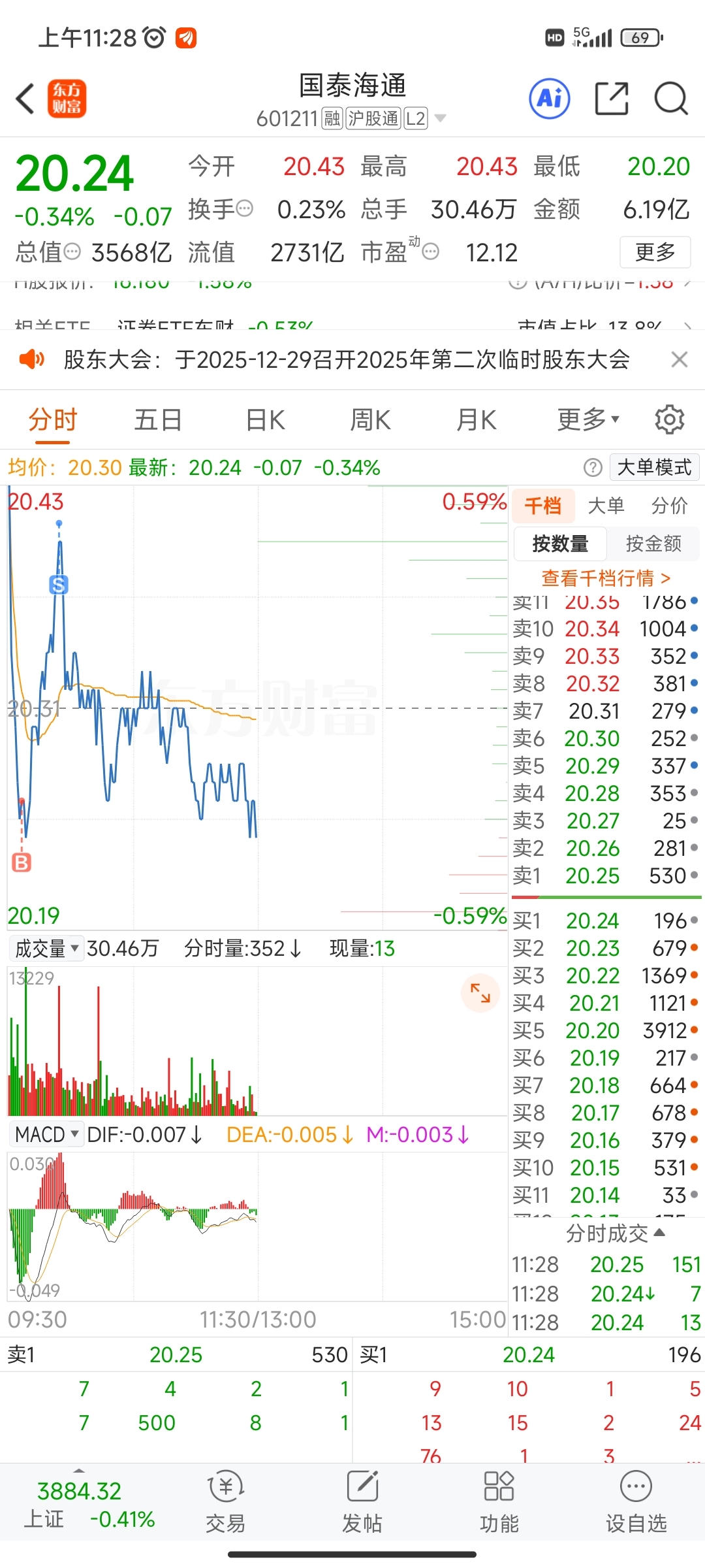 $国泰海通(SH601211)$ 今天你不是应该向上冲么?