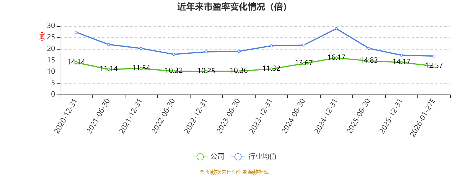 以本次披露业绩预告均值计算,公司近年市盈率(TTM)图如下所示: