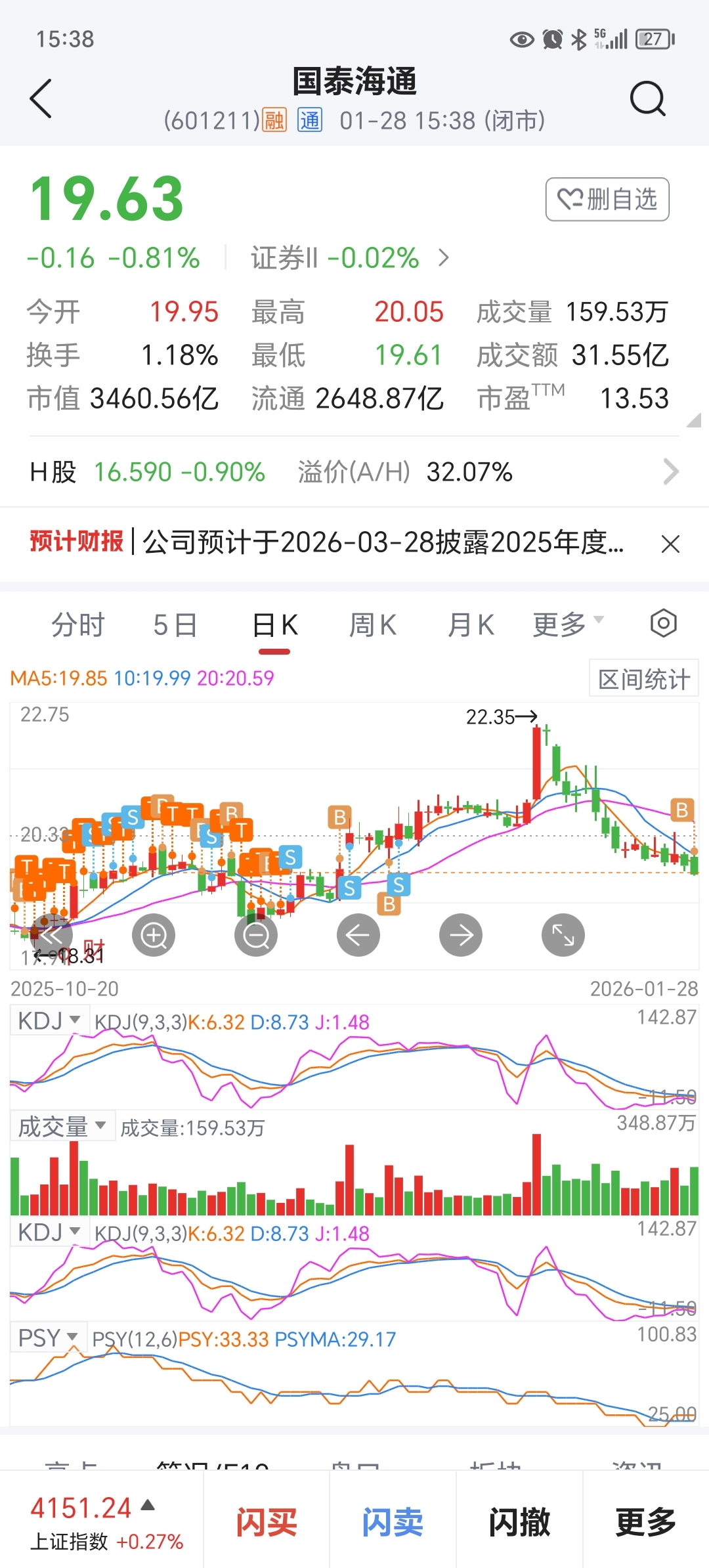 $国泰海通(SH601211)$ 高点一口没吃到,只能下跌买入了,