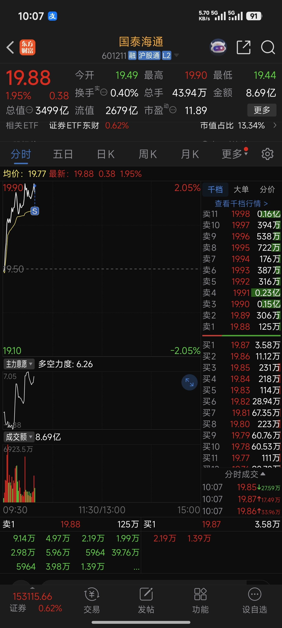 $国泰海通(SH601211)$ 兄弟们,我今天又抛三分之一,11点20在来操作哦