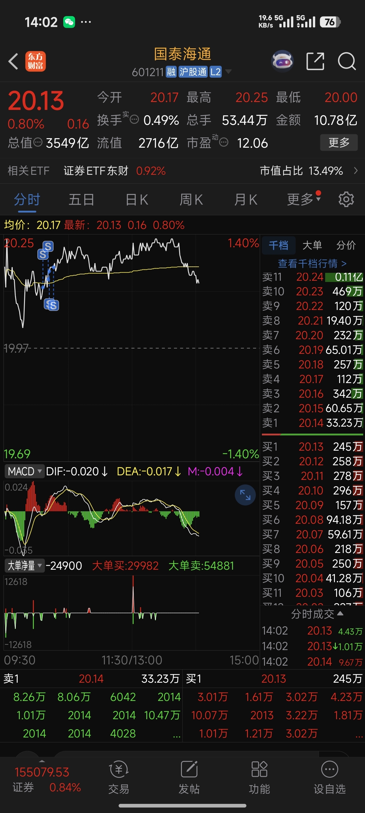 $国泰海通(SH601211)$ 周四怕整个市场抛压大哦,怕是都要减仓套现过节