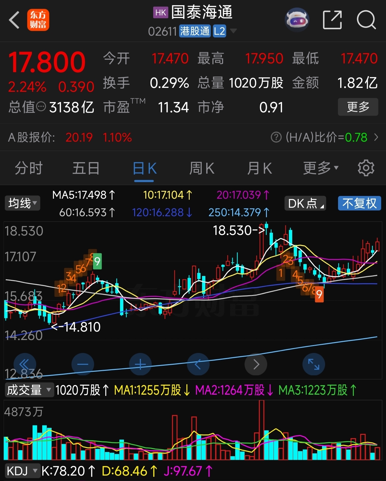 $国泰海通(SH601211)$ 港股那边又奔新高去了。