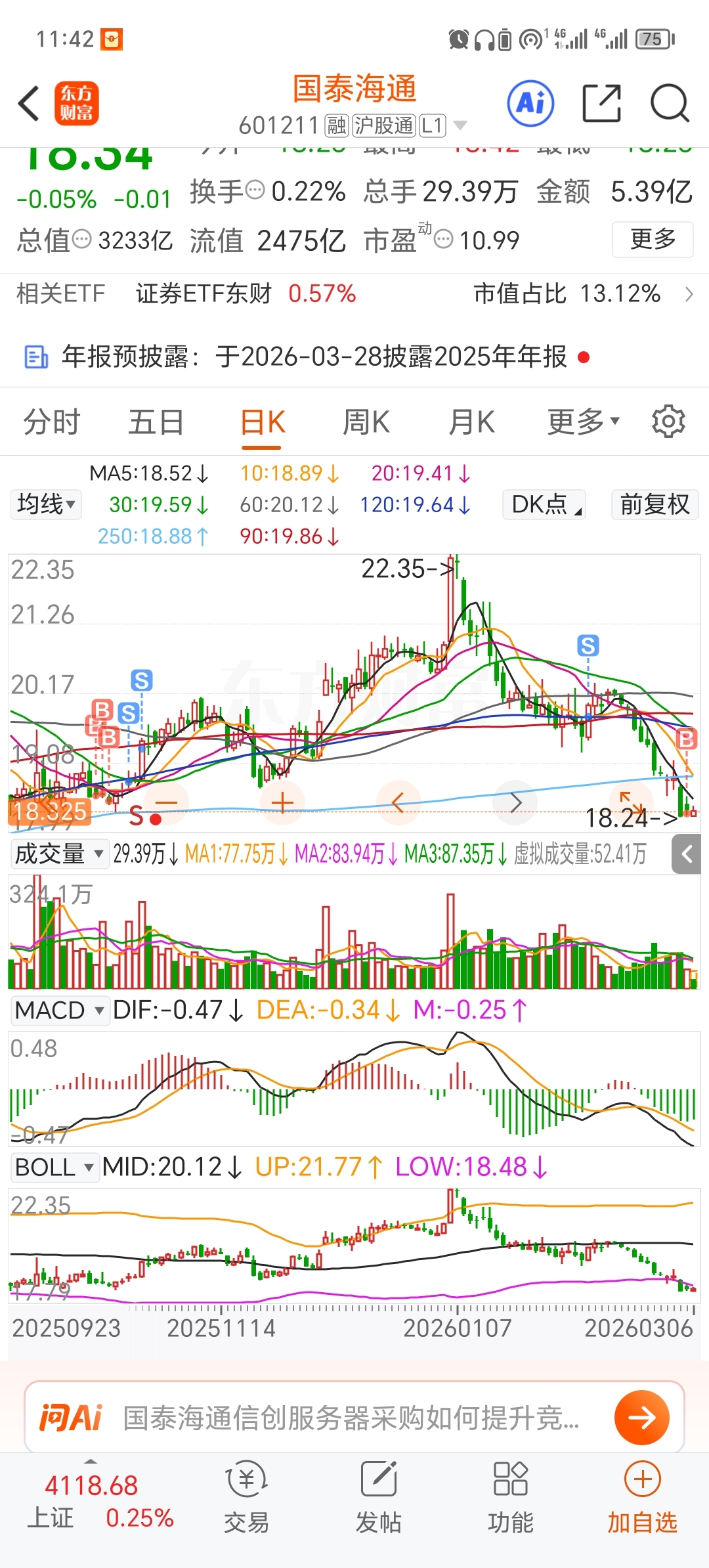 $国泰海通(SH601211)$ 绿的原因就是我昨天买了