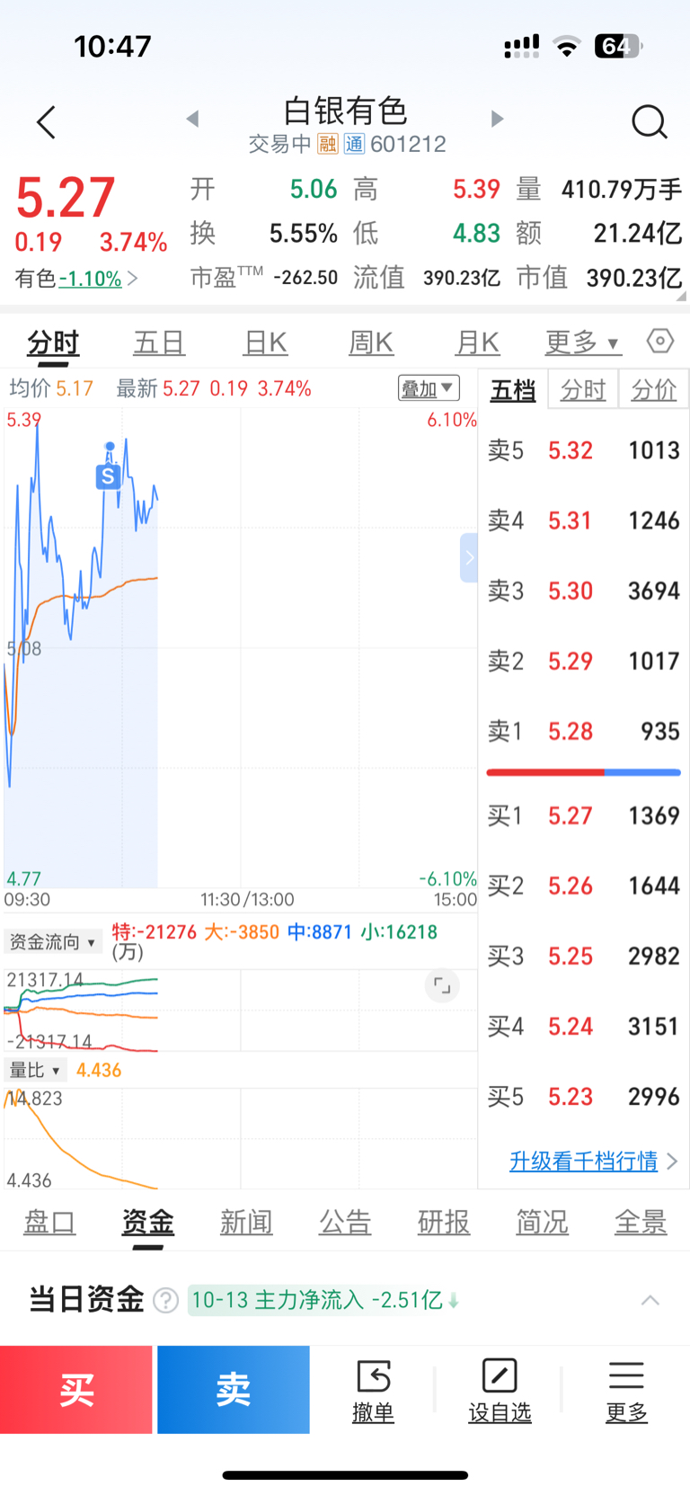 $白银有色(SH601212)$ 挂单 卖出了,也不知道飞没飞……