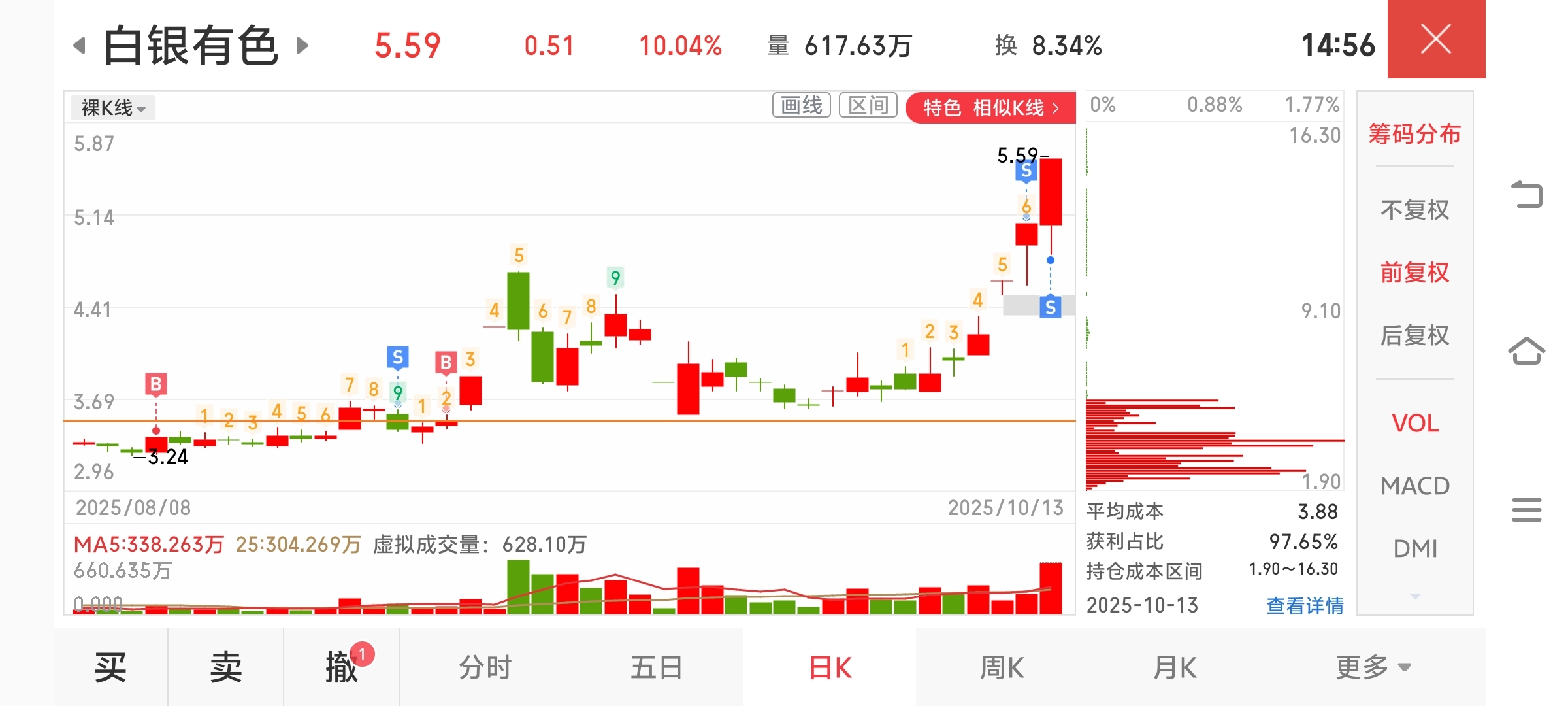 $白银有色(SH601212)$ 本金已全部出了,让利润自由飞翔