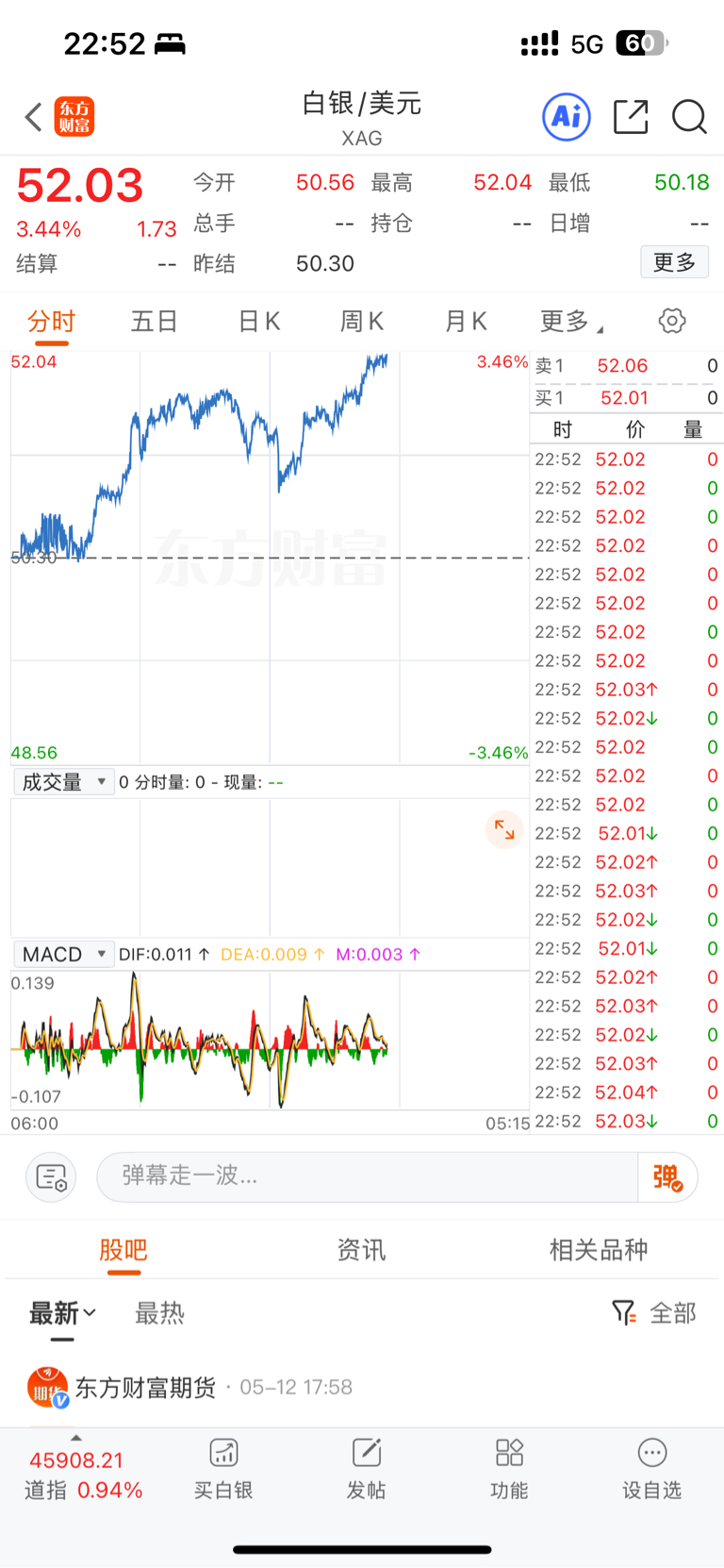$白银有色(SH601212)$ 破52了。明天直接封死