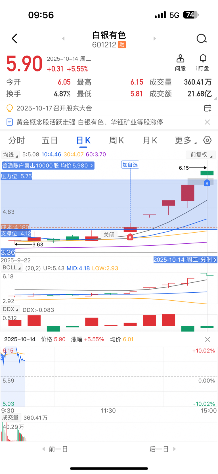 怎么说呢,还是感谢白银有色,虽然不多,想想开盘挂跌停价抢跑走了,居然给我成交了5